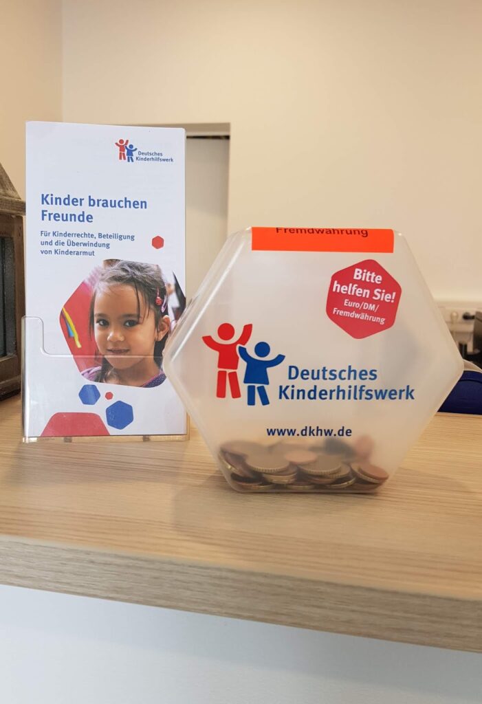 In unseren Geschäftsräumen findet sich ab sofort eine Spendendose, sowie einiges an Informationsmaterial des deutschen Kinderhilfswerks. Die neue Spendendosen-Partnerschaft macht´s möglich.